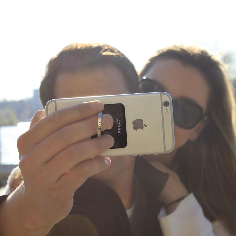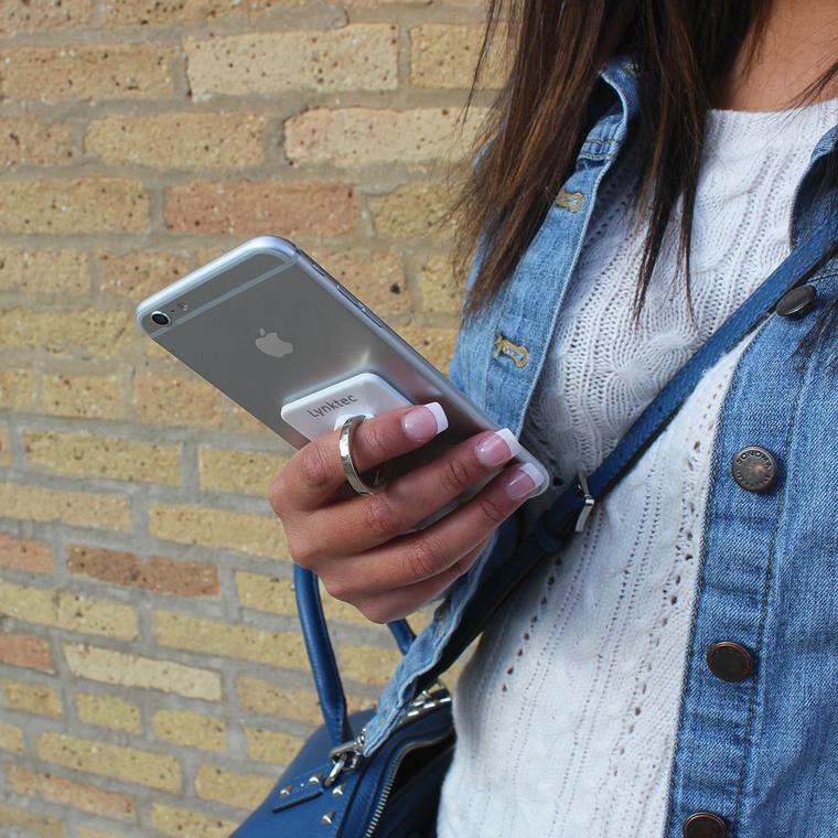 A smart phone ring stand and holder that makes taking photos, watching videos, texting, and talking easier and more convenient. The 360° Ring Stand grips directly onto phones and can easily be removed without leaving sticky residue.